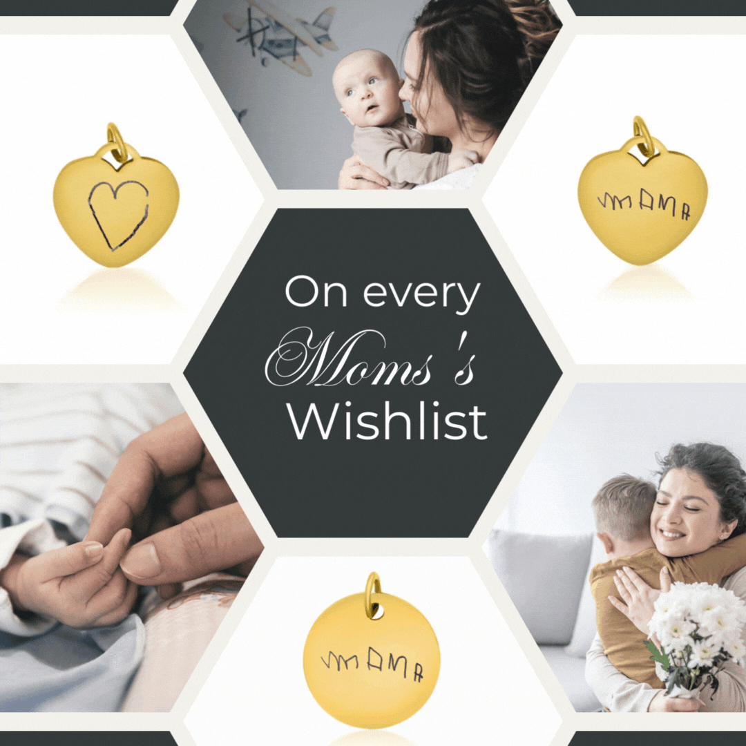 Kreiert zusammen einen Anhänger, worauf nicht nur du, sondern auch dein Kind stolz ist. Graviere eine Zeichnung oder etwas Geschriebenes deines Kindes. Auf der Wunschliste jeder Mama!
